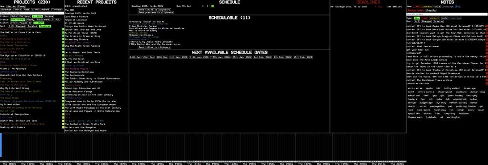 Then, various essays sketched in 2023 and 2024 began being finished, one after another. It was great to feel the work reaching fruition - loose ends being tied up, more bricks in the wall, more things done and dusted. Among these were a few entries in the Grim Rhymer series and the entire Future Magic series.